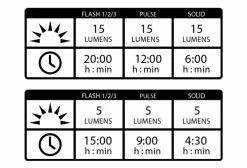 La MJ-906 est un combo de lumière comprenant une lumière avant de 5000 lumens et un Ă©clairage arrière. Les 5000 lumens sont produits par 5 LED qui diffusent un faisceau de 20° de visibilitĂ©. La tĂŞte d’Ă©clairage comprend Ă©galement un petit Ă©cran LCD, qui indique le pourcentage d’utilisation et le mode sĂ©lectionnĂ©.