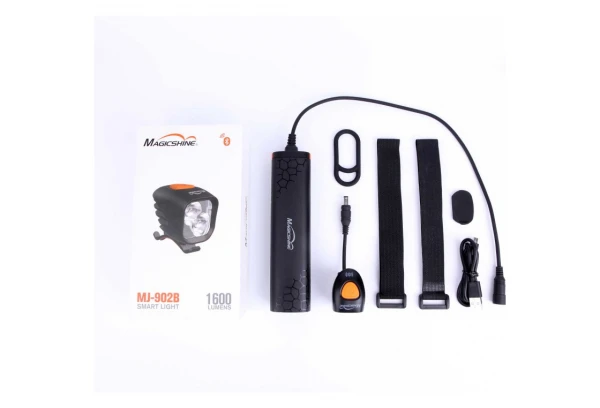 La version Bluetooth 902B offre la possibilitĂ© de programmer le nombre de niveaux d’Ă©clairage, la luminositĂ© et les modes grâce Ă ‘application Magicshine pour IOS ou Android. Après programmation via l’application, le fonctionnement se fait en option via le commutateur Ă distance Bluetooth externe (R).