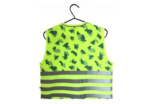 Veste Ă imprimĂ© camouflage avec 4 bandes rĂ©flĂ©chissantes pour ĂȘtre encore plus visible dans lâobscuritĂ© (certificat EN1150).