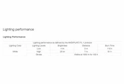 - Puissance : 20 lumens (ANSI/PLATO FL 1).
