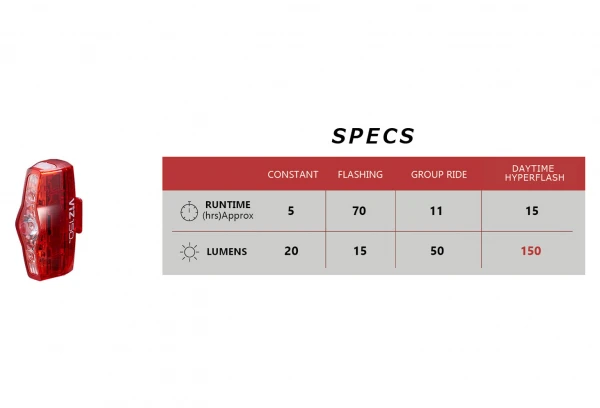 Compact, lumineux et polyvalent, l’Ă©clairage arrière ViZ150 se distingue par sa haute visibilitĂ© grâce Ă la technologie d’objectif OptiCube™ et au mode Daytime Hyperflash™ dans un ensemble Ă©conomique.